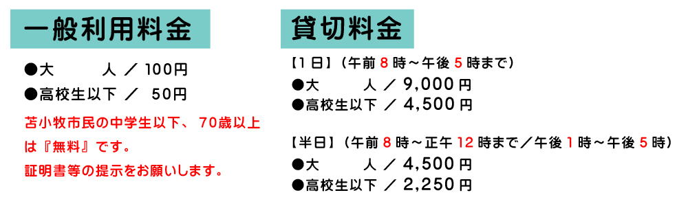 ●会議室 1回 ¥1,000 ●放送設備 1回 ¥3,000